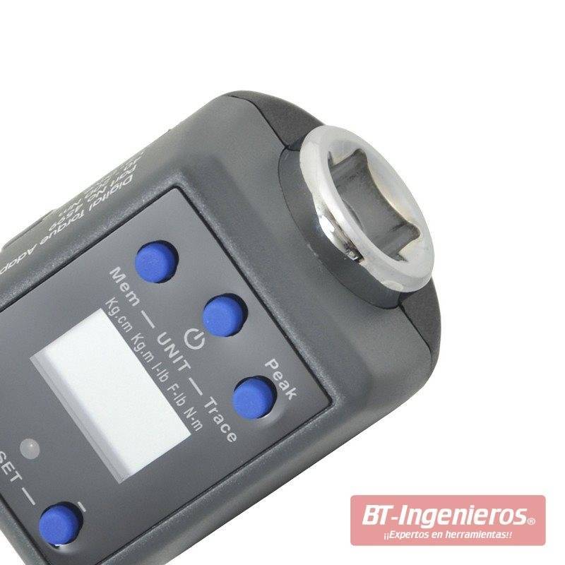 - Adaptador dinamométrico digital apto para uso con llaves fijas de carraca o llaves dinamómetricas con cualquier medida de cuadradillo 1/2", 3/4", 1/4" o 3/8". (Vea adaptadores para carraca bt-ingenieros)