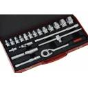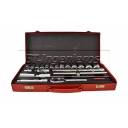 Maletín de carraca con 21 piezas en caja de metál. Medidas métricas con carraca y vasos de 1/2".