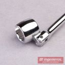 Llave para quitar sondas lambda constituida por cabezal articulado 360º & cuerpo extralargo de 265 mm arqueado en 30º, que permite acceder al alojamiento reducido de la sonda lambda, alcanzarla y accionamiento fácil para su extracción.
