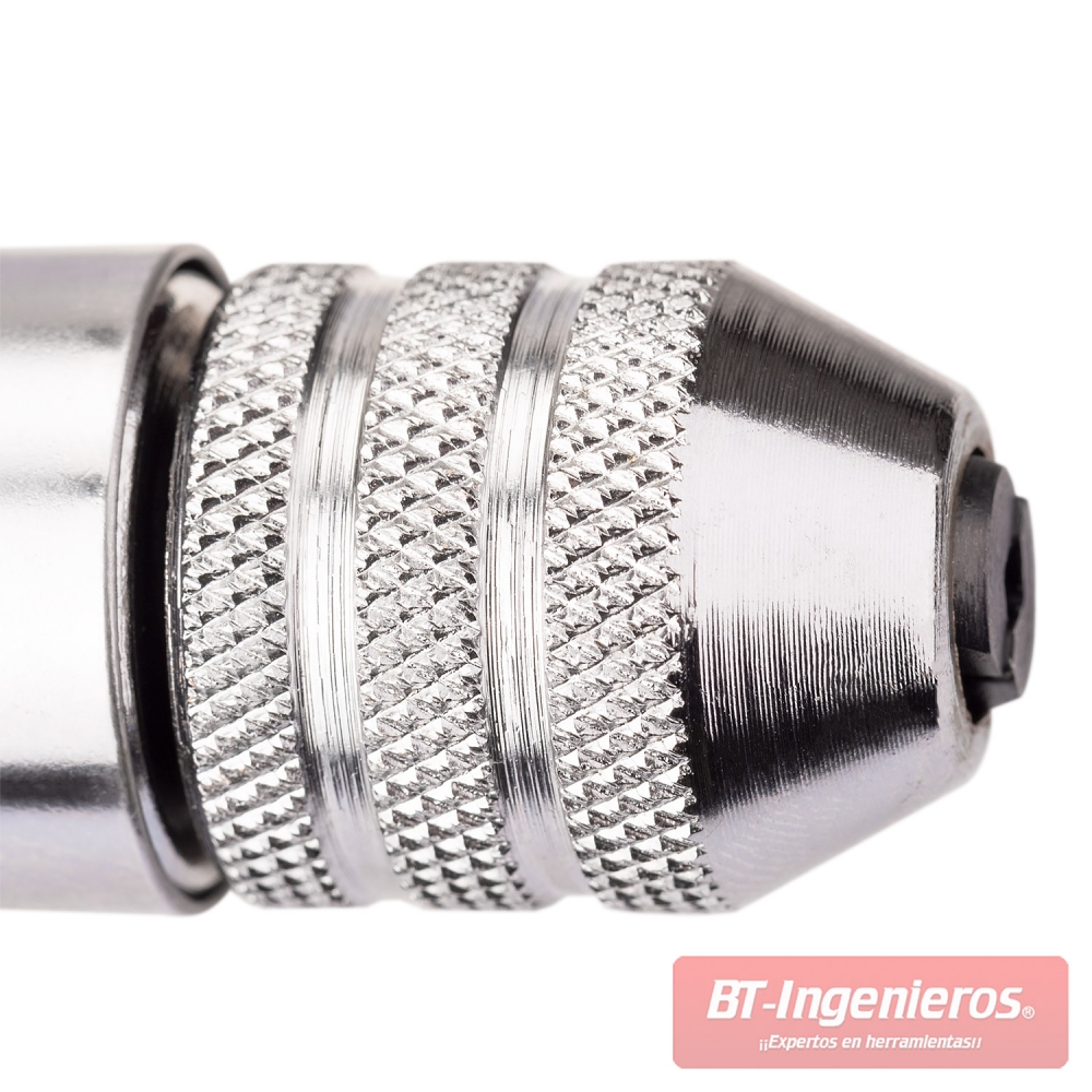 - - Un anillo moleteado en el cabezal del portamachos mejora el agarre, cuando tiene los dedos grasosos.