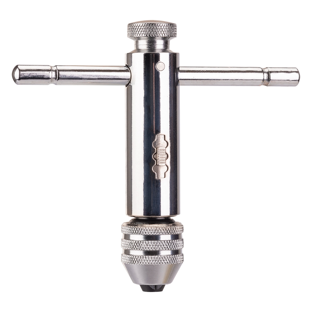 Portamachos con carraca de alta resistencia, indicado para cortar roscas con machos hasta métrica 12 y otras herramientas, como extractores de tornillos, escariadores, etc.