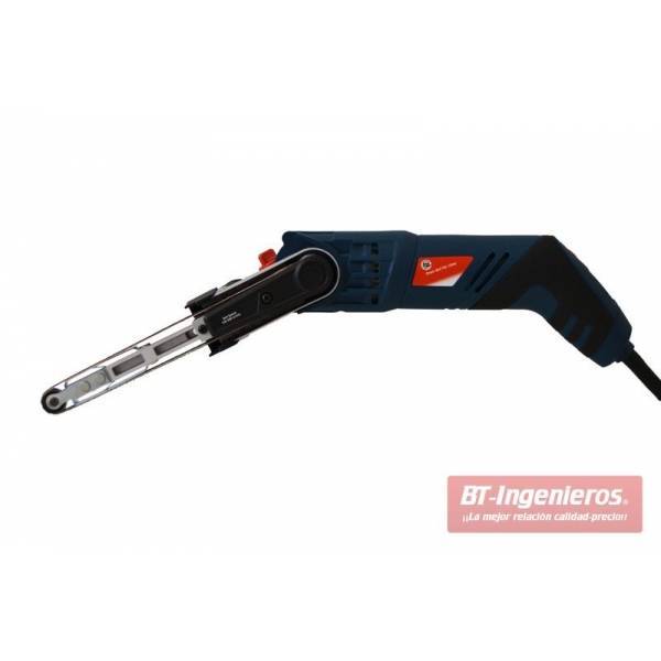 La lijadora de banda eléctrica es una herramienta robusta y práctica, diseñada para trabajar en espacios reducidos, curvos, planos, ángulos rectos, etc. Con un motor potente de 260 W y una lija estrecha de 13 mm, esta herramienta es ideal para desincrustar, lijar, retirar rebordes en soldaduras, moldear juntas y bordes, entre otros.