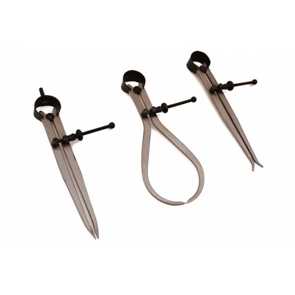 Juego de 3 compases calibradores de resorte: Herramientas de alta precisión fabricadas en acero al carbono para tomar y transmitir medidas precisas, con un rango de 0 a 160 mm. El conjunto incluye compases para medidas interiores, exteriores y generales.🔗