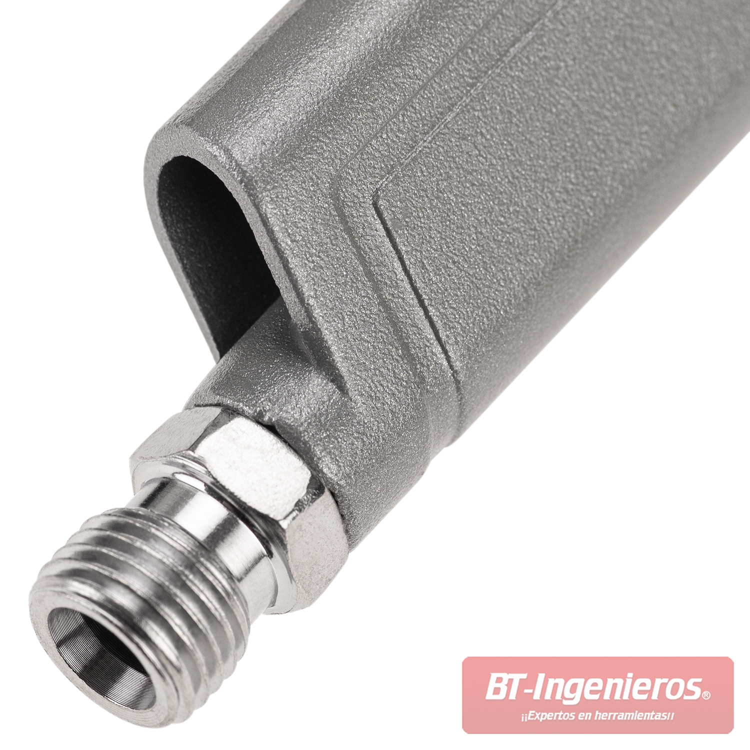 La pistola sopladora de aire comprimido con boquilla corta está diseñada para tareas de limpieza, secado y eliminación de polvo o virutas en entornos de trabajo exigentes. Su construcción en aluminio ofrece ligereza y resistencia, mientras que el gatillo grande permite un control progresivo y preciso del caudal.