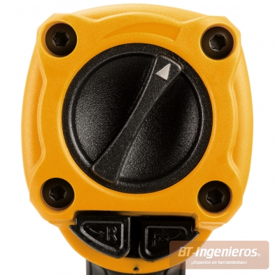 El selector trasero permite cambiar el sentido de giro y regular con precisión el nivel de par. Todo se ajusta con una sola mano de forma rápida y segura, facilitando el trabajo en tareas repetitivas de mantenimiento y montaje.