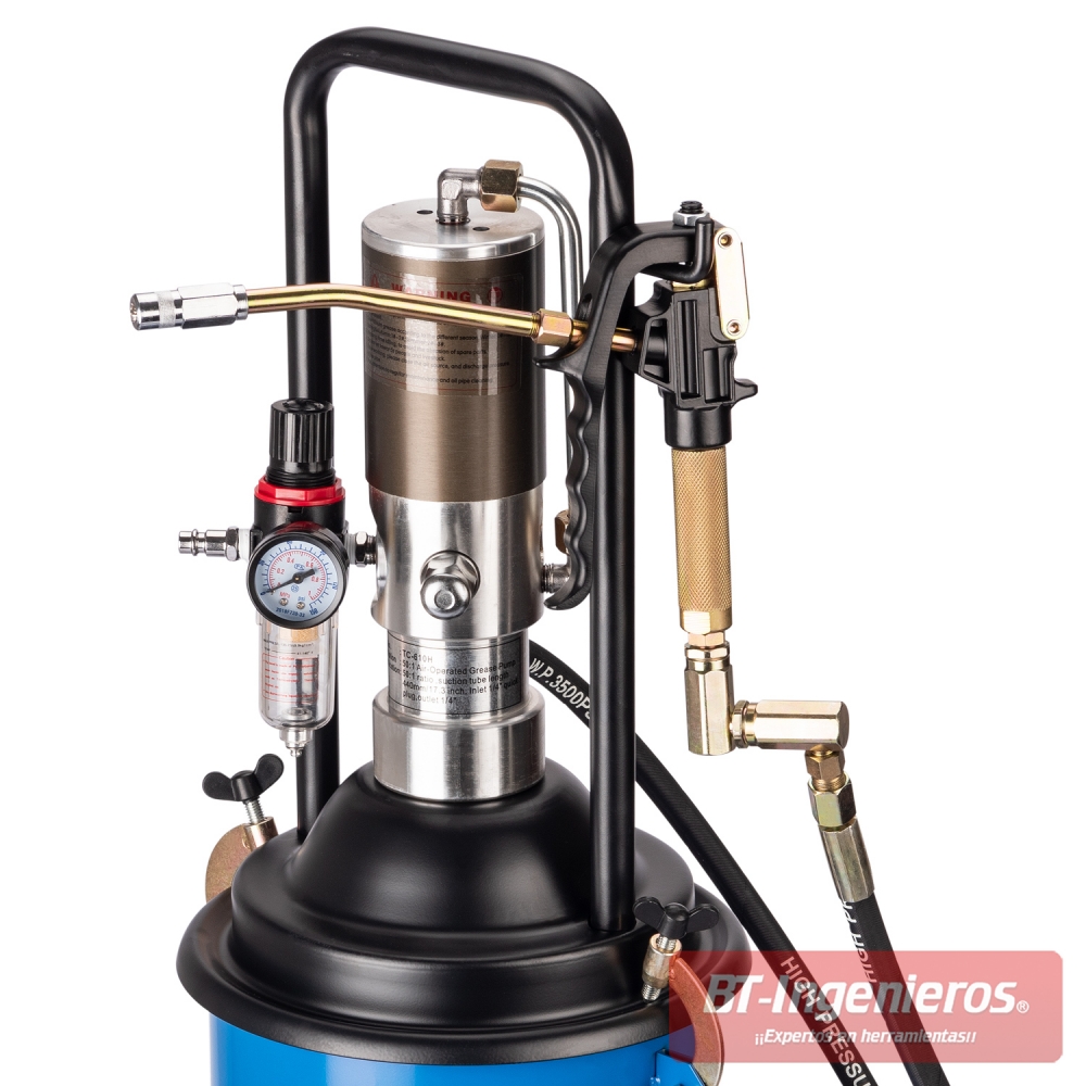 Optimice su proceso de lubricación con esta bomba de engrase neumática de alta capacidad y rendimiento.