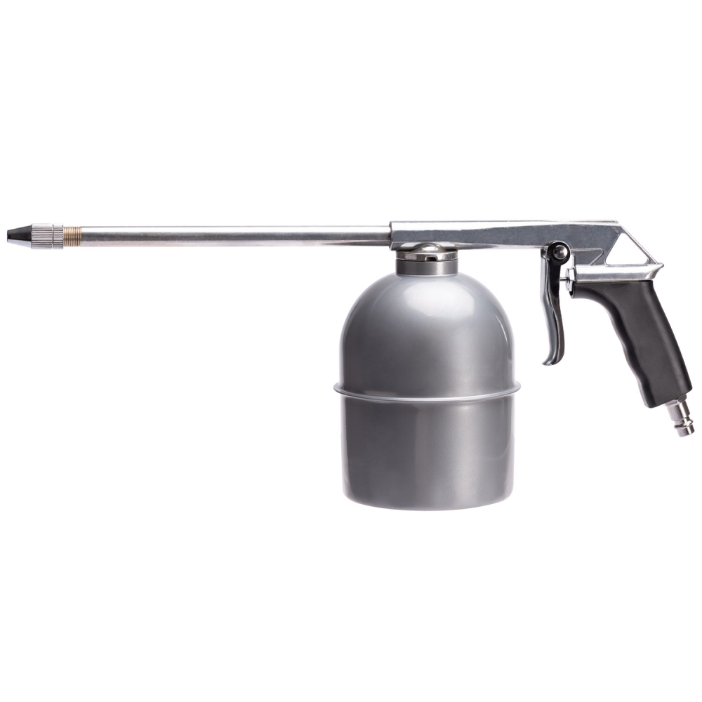 Pistola para pulverizar una alta cantidad de aceites, productos de limpieza y tratamientos anticorrosivos. Esta pistola petroleadora está especialmente indicada para limpieza de motores, gracias a su cabezal de 210 mm. desde el eje, puede acceder a las zonas más confinadas del motor.