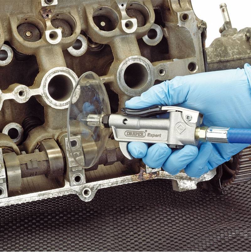 Esta pistola de soplado está diseñada para limpieza de forma segura en aquellas zonas que puedan salpicar partículas o líquidos, gracias a pantalla protectora transparente tipo paragüas que equipa.