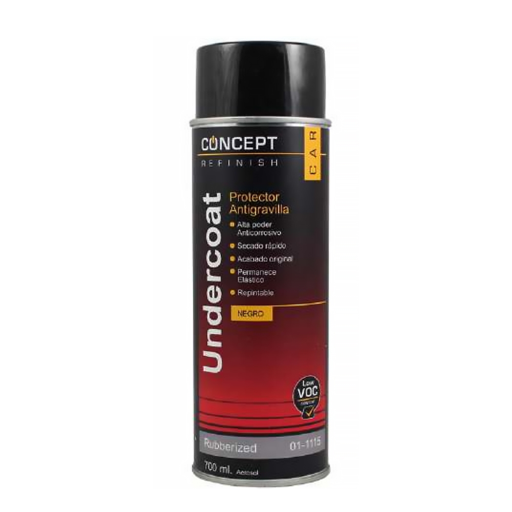 Protector antigravilla y anticorrosivo, para reconstruir y proteger bajos de vehículos, pasos de ruedas, largueros de chasis, faldones, paneles delanteros... Proporcionando un recubrimiento anticorrosivo y elástico, que evita daños por impacto de gravilla o piedras, y resistente a la acción del agua, agua salada, sales, aceites o ácidos.