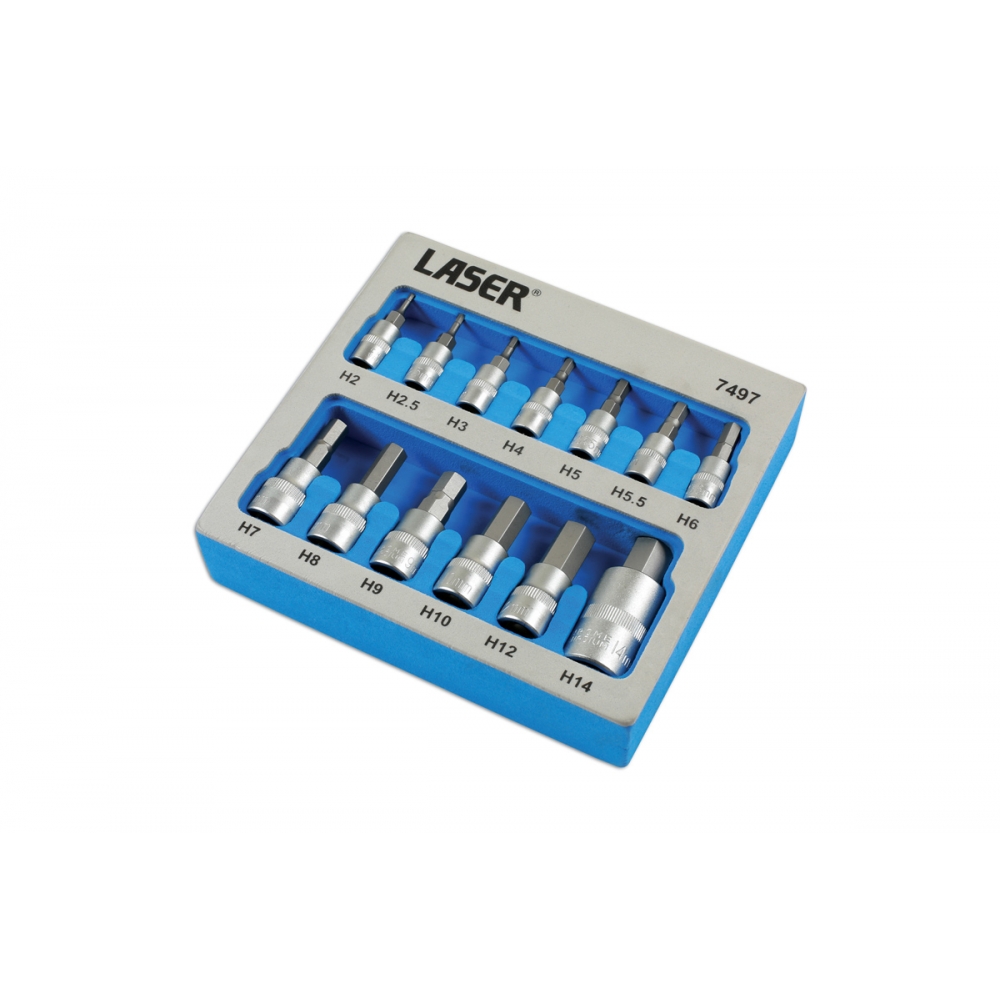 Se suministra bandeja foam con 13 puntas hexagonales de seguridad de medidas métricas 2, 2.5, 3, 4, 5, 5.5, 6, 7, 8, 9, 10, 12 & 14 Mm.
