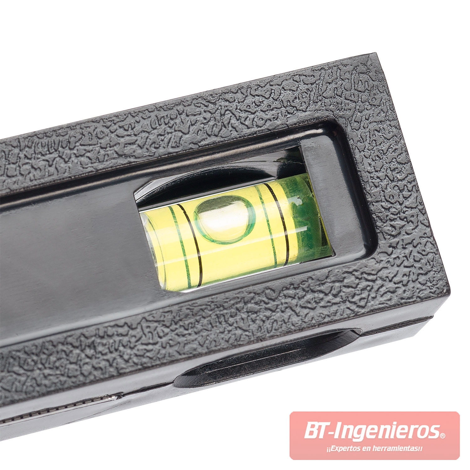 Falsa escuadra con rotación libre de 0 a 360°, guía deslizante & nivel de burbuja, para medición precisa de ángulos internos y externos de piezas, transferir su ángulo y además permite marcar la longitud de la pieza.