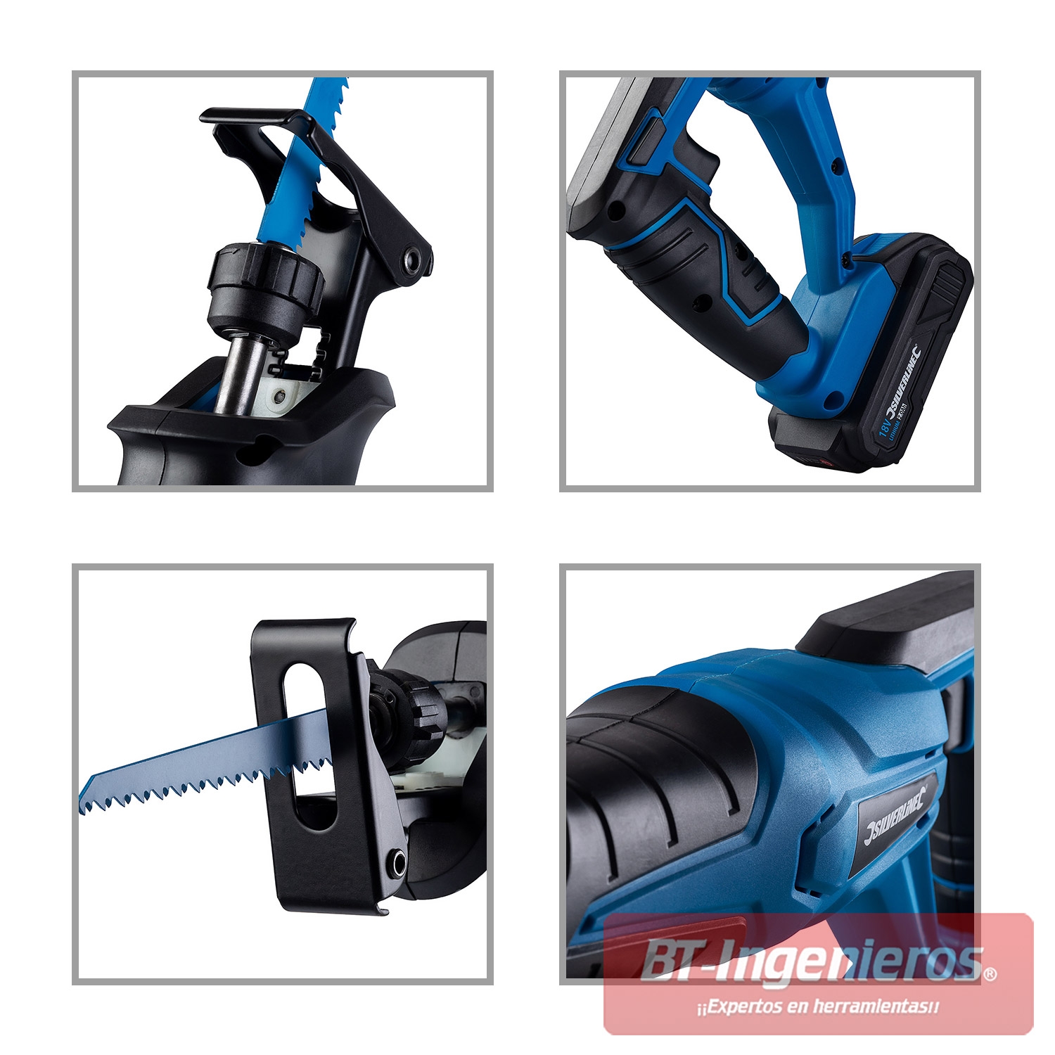 Sierra de sable con 1 batería de litio 18V 2Ah & acople universal ½” para uso con gran variedad de tipos de sierras, también disponibles en la categoría BT-Ingenieros hojas de sierra.