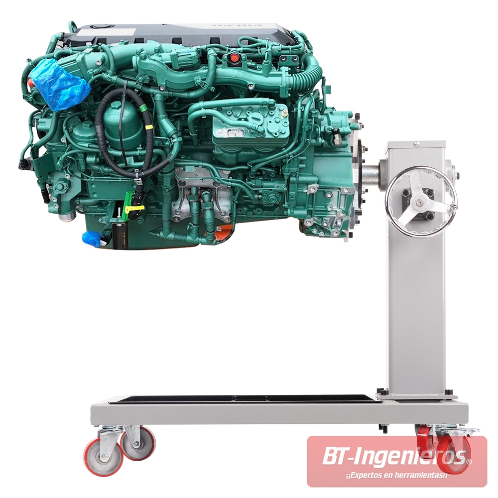 El soporte de motores profesional Piramide PRO SMP1T está diseñado para trabajos exigentes con motores de cualquier tipo y es especialmente compatible con motores de camiones y vehículos industriales. Gracias a su estructura ultra reforzada, su capacidad de carga de hasta 1.000 Kg y su mecanismo de giro asistido por volante y reductor, este soporte es la herramienta ideal para el desmontaje, inspección o reparación de grandes motores con total seguridad y comodidad.