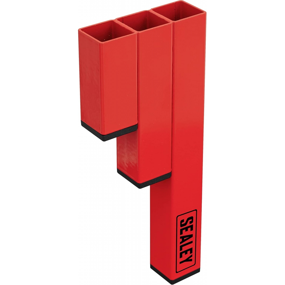 Fabricado en acero robusto con acabado con recubrimiento de polvo en color rojo, para resistencia al óxido y disolventes.