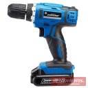 Taladro atornillador de batería de litio 1,3 Ah para atornillado o perforación en madera y acero. Constituido por portabrocas para accesorios de diámetro hasta 10 mm y cargador inteligente.