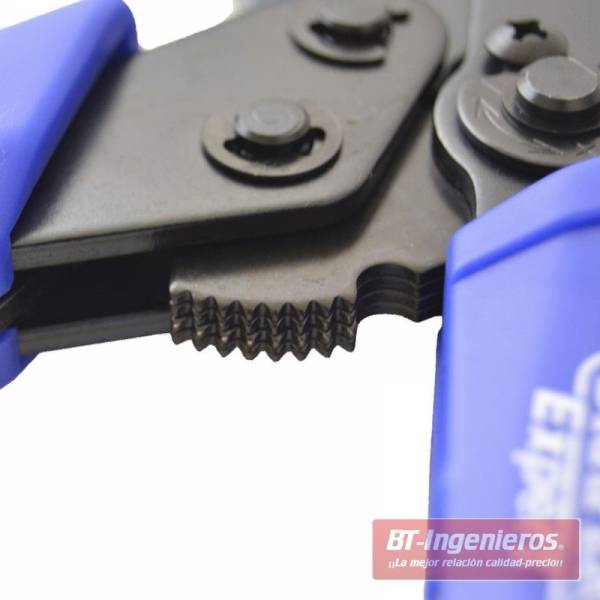 - Alicate profesional para el crimpado de terminales aislados en canal rojo: 0.5-1.00mm², canal azul: 1.5-2.5mm² y canal amarillo: 4.0-6.0mm².