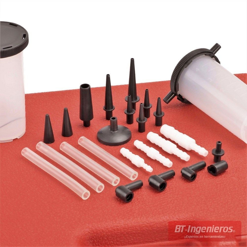 Además, la bomba y los accesorios incluidos pueden también ser usados para transferir líquidos o sangrar sistemas de freno.