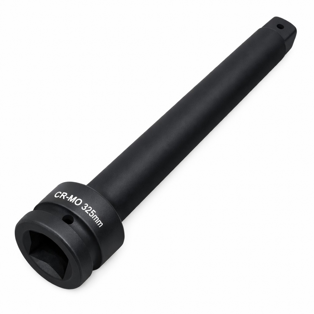 Extensión de impacto 1" de 325 mm fabricada en acero Cromo Molibdeno (CrMo), diseñada para trabajar con vasos de impacto en aplicaciones de alto par. Ideal para acceder a tornillería profunda o zonas difíciles en camión, maquinaria e industria.